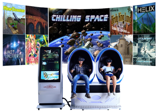 The 2P 9D VR Cinema combines virtual reality technology and chair movement. Virtual reality